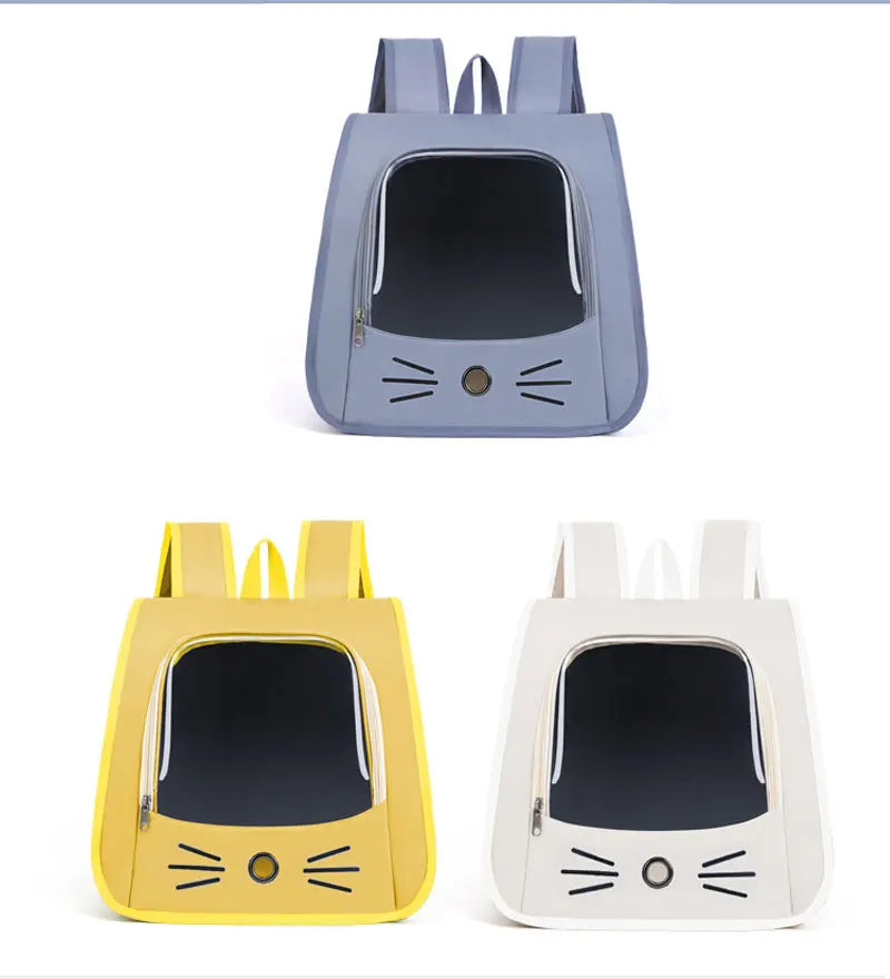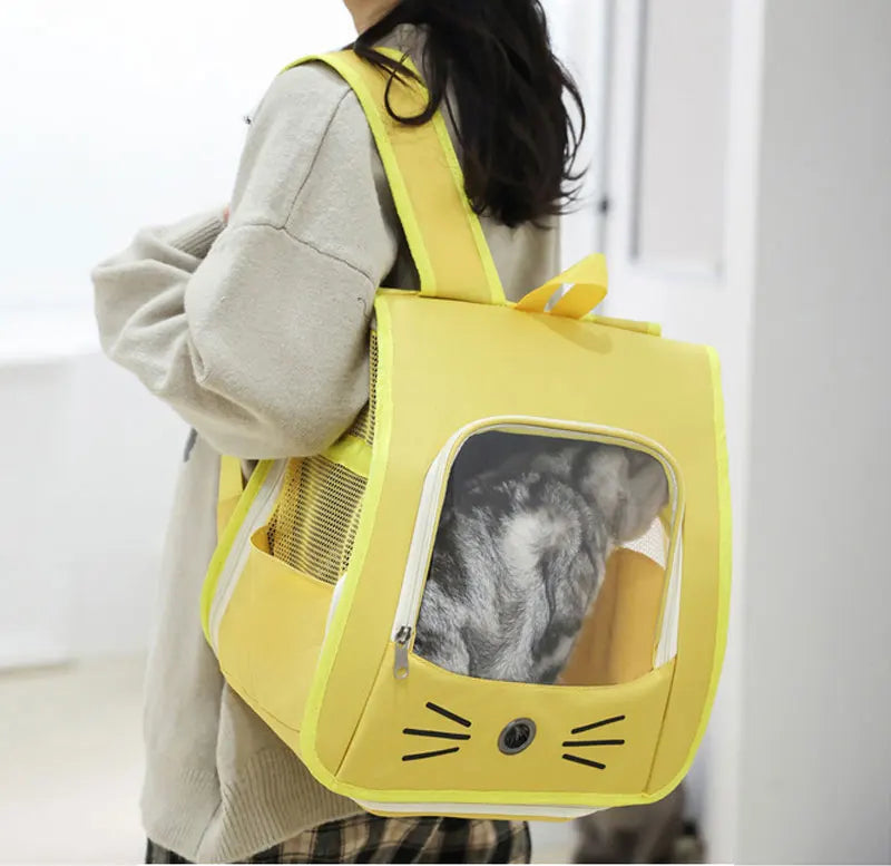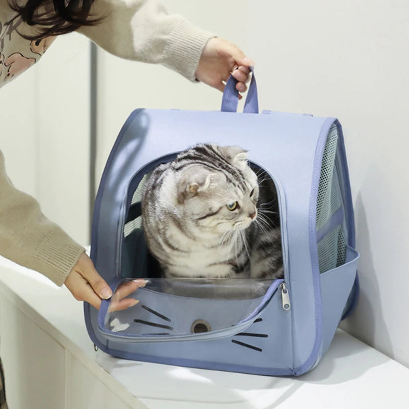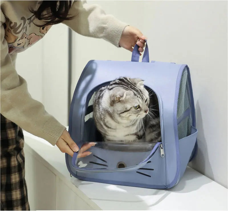 Mochila portátil para transporte de gatos e cães de pequeno porte, ideal para viagens e atividades ao ar livre. Transparente e respirável.